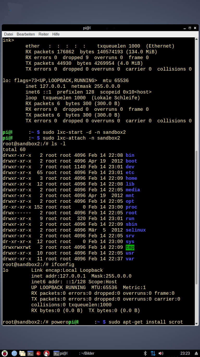 sudo apt-get install openssh-serversudo apt-get install lxcsudo lxc-create -t debian -n name_was_man_möchtest Das erstes mal dauerte etwa 10-15 Minuten. Raspberry Pi 2 hat dafür 30 Minuten gebraucht. Ubuntu…